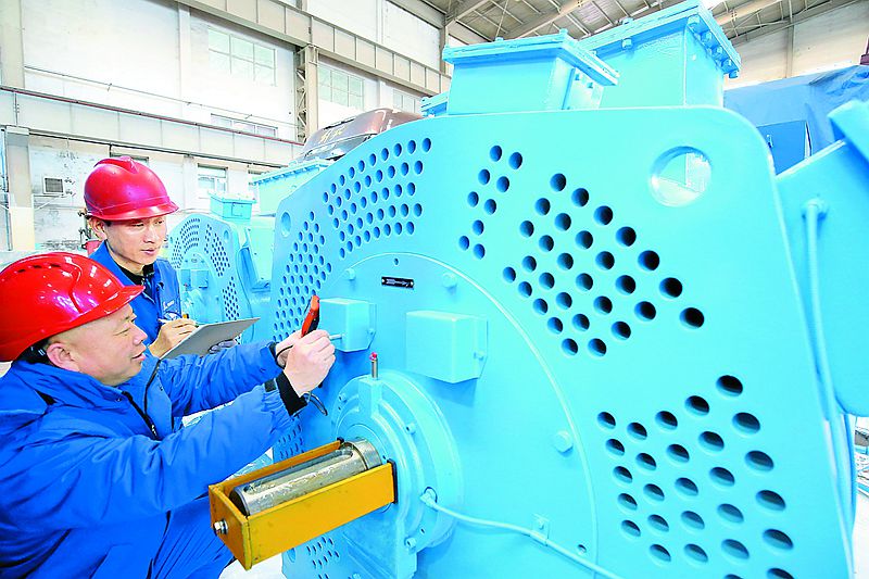 在佳木斯电机股份有限公司生产车间,技术人员在给红沿河核电站刚刚生产最后2台余热排出泵配套电机(k1类)进行检测。据了解,他们用了10年的时间研发,由样机转化成产品,填补了国内空白。该产品用于核电站安全壳内,发挥余热导出安全功能,为核电站内安全级别最高的电动机。