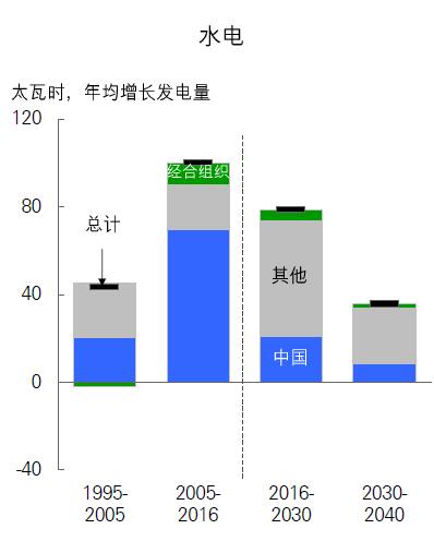 报告中提到,水电增长(年均1.3%,61太瓦时每年)在发展中经济中十分普遍。尽管比起过去几年的快速增长明显放缓,中国在增长中占比最大(16太瓦时每年);此外是南美和中美地区(13太瓦时每年)以及非洲(11太瓦时每年)。