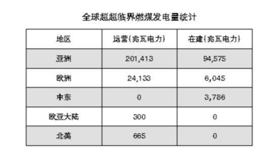 全球超超临界燃煤发电量统计