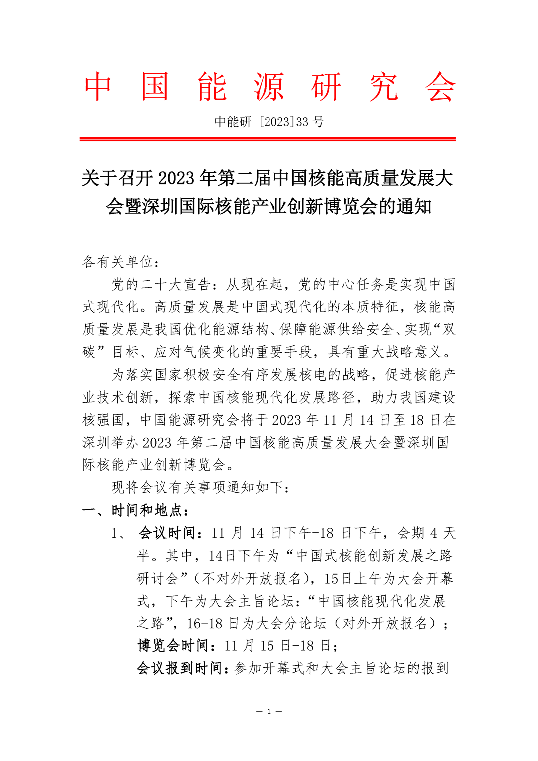 关于召开2023年第二届中国核能高质量发展大会暨深圳国际核能产业创新博览会的通知