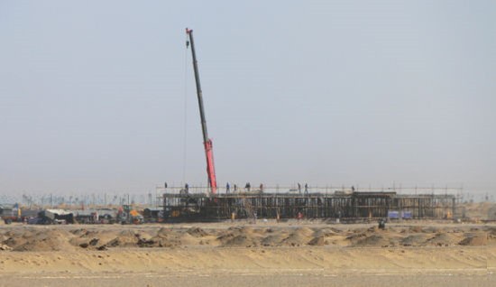 正在建设的集热场桩基基础承台,累计浇筑完成2124个,集热场塔架安装完成1085个;主厂房基础承台施工完毕;熔盐储罐基底铺设完成;组装车间已基本完工。110千伏送出工程线路基坑开挖190基,基础浇筑113基;变电站浇筑构支架基础4基;天然气管线敷设管道总长度13km,焊接管道6km。