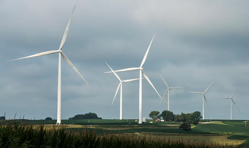 爱荷华州的这家酒店将风力涡轮机延伸到地平线上。美国国家可再生能源实验室正在提供海量数据,以帮助确定风机的安装位置,例如爱荷华州的风机。(Dennis Schroeder摄/ NREL)
