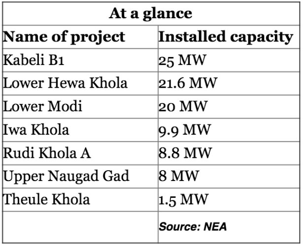 在接近完成的七个项目中,25兆瓦Kabeli B1,21.6兆瓦下赫瓦霍拉和20兆瓦下莫迪是三大项目。