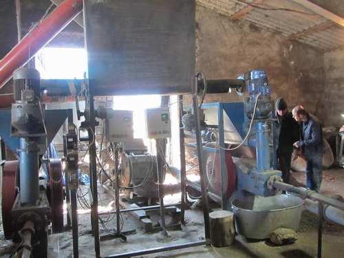 在示范项目的第一天,技术操作就是收集葡萄和将其加工成燃料煤球。在博尔格拉德市附近的葡萄园里,人工切割葡萄,按照惯例,葡萄树被拖拉机拖出一排并储存在堆中。将去年的一批试验葡萄转运到位于Kamenka村Izmailsky区的敖德萨地区生物燃料小型工厂的南部试点,以加工成两种固体生物燃料:鳕鱼和煤球。迷你工厂是当地爱好者为各种当地生物质制造压块技术(包括葡萄藤)的企业。应该指出的是,葡萄藤是煤球的特定原料,在压块之前需要特殊的设备进行研磨。切碎后,取一块鳕鱼焚烧,其余部分在机械压榨机上进行加工,生产率为350kg / h,采用尼尔森型煤饼。生物燃料被装在袋子里运到Bolgrad市。