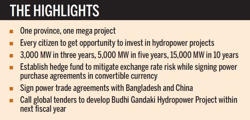 能源部长Barsha Man Pun发布白皮书。“此外,受电力线项目影响的家庭将有机会投资水电项目。”