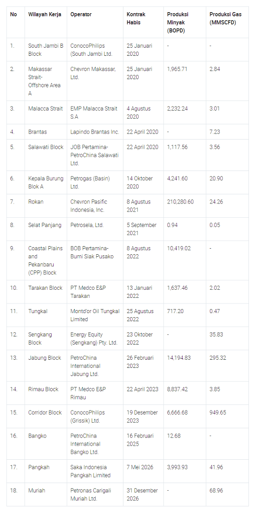 能源和矿产资源部(ESDM)的目标是18个石油和天然气区块,其合同到2020年到2026年将于今年决定。目标是提供确定性。