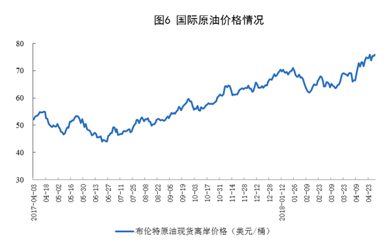 受地缘政治因素影响,原油价格持续走高,布伦特原油现货离岸价格创下2015年以来最高水平。截至4月30日,价格为75.92美元/桶,比3月底上涨6.90美元/桶。在此拉动下,国内成品油零售价格也相应大幅上调。