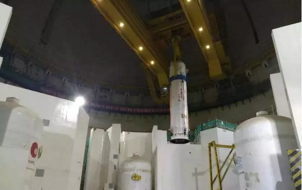 福清5号稳压器空重约104吨,总高13.8米,要将其引入核岛需跨越压力容器及大半个核岛,还要避开前期已就位的蒸汽发生器和主泵等核岛主设备,安装工作难点多且就位要求高。为此核动力院设计人员提前进驻现场,与安装单位现场分析解决问题,同步修改完善安装方案,16日历经吊装、引入、翻转等工序后吊入稳压器隔间,最终于12时26分成功安装就位。