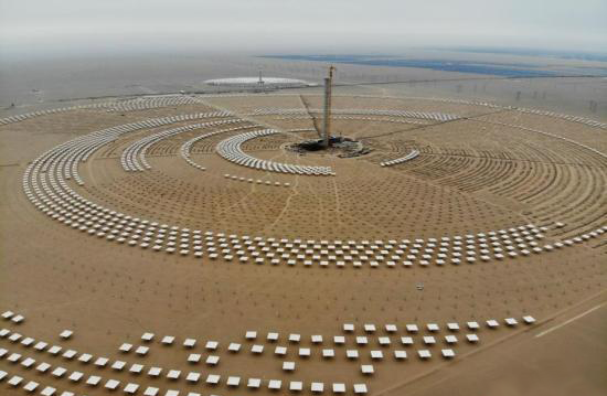 作为中国首批光热发电示范项目的建设基地之一,该电站有全球单机最大的聚光集热镜场,共一万余台定日镜。