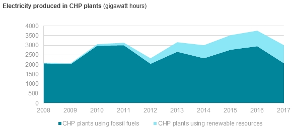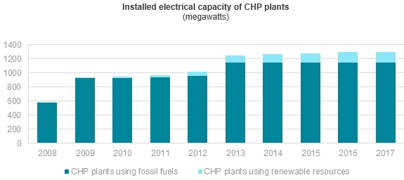 自2008年以来,由RES供电的热电联产电厂的装机容量增长了15倍。与2016年相比,这些热电联产电厂的装机容量增加了8%,2017年达到155兆瓦。