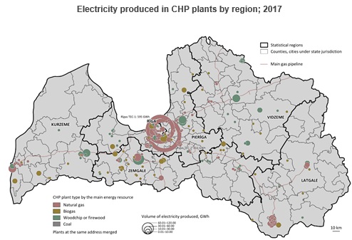 2017年,RES在热电联产电厂生产的电力的最大份额在Vidzeme和Zemgale地区分别登记 - 分别为89%和82%,而在里加则为最小份额 - 占该地区总电量的3%。