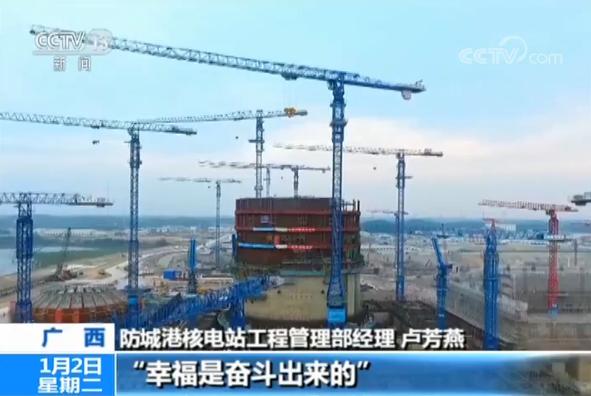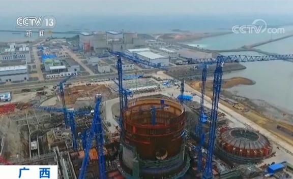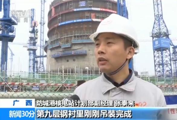 广西防城港核电站计划部副经理 张泰来:现在我们这个节点非常关键,防城港(核电站)3号机核岛的第九层钢衬里刚刚吊装完成,我们正在准备为今年最大的土建里程碑,穹顶吊装做最后的冲刺。