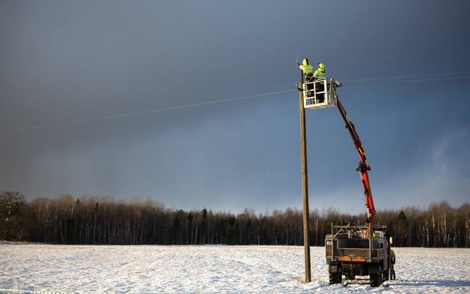 Elektrilevi在Saaremaa的Kuressaare附近修复电力线。 来源:(Valmar Voolaid)