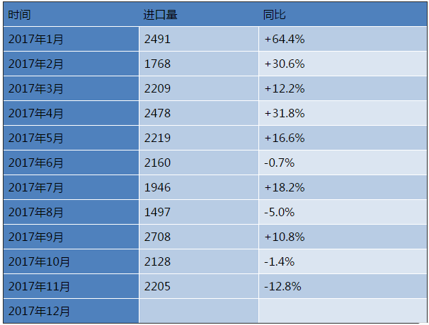 1、2017年以来煤炭的进口情况