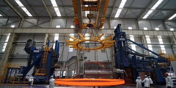 2018年5月30日上午10点18分,山东伊莱特重工股份有限公司(以下简称伊莱特)在济南章丘隆重举行“大锻件项目暨全球首台超级轧环机投产仪式”,这次下线的全球最大轧环,直径16米,重126吨,打破了原世界最大锻环直径10米的纪录,将我国环类、筒类锻件的制造能力一举提高到世界领先水平。