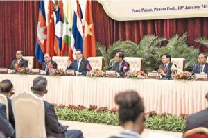 当地时间1月10日,国务院总理李克强在金边和平大厦出席澜沧江—湄公河合作第二次领导人会议后,同会议共同主席国柬埔寨首相洪森以及老挝总理通伦、泰国总理巴育、越南总理阮春...