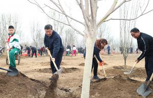 4月2日,党和国家领导人习近平、李克强、栗战书、汪洋、王沪宁、赵乐际、韩正、王岐山等来到北京市通州区张家湾镇参加首都义务植树活动。这是习近平同大家一起植树。新华社记...