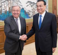 4月8日,国务院总理李克强在北京钓鱼台国宾馆会见来华进行正式访问的联合国秘书长古特雷斯。 新华社记者王晔摄新华社北京4月8日电(记者崔文毅)国务院总理李克强8日下午在钓鱼...