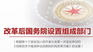今天,国务院机构改革方案提请十三届全国人大一次会议审议。根据该方案,改革后,国务院正部级机构减少8个,副部级机构减少7个,除国务院办公厅外,国务院设置组成部门26个。具体调整情...