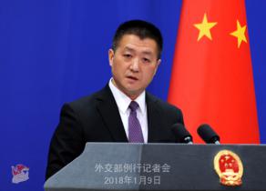 2018年1月9日外交部发言人陆慷主持例行记者会(图片来源:外交部网站)据外交部网站9日消息,针对法国总统马克龙有关一带一路的积极表态,中国外交部发言人陆慷表示,中方欢迎法国及... 2018-01-10 -