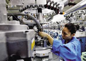 亚洲第一大袜业公司——中昊针织的一名工人在袜子生产车间内调整针织机。在长三角区域,一批以专精特新见长的中小型企业,正快速成长为经济发展的小巨人。(图片来源:新华社 方喆...