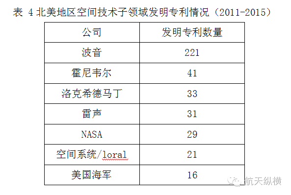 近年来,空间技术领域创新一直是航空航天领域的热点。波音公司在空间技术子领域的创新活动快速增长,2011-2015年发明专利数量为221件,遥遥领先于位居北美区域第二的霍尼韦尔公司。