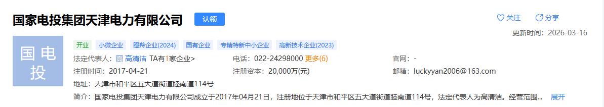 国家电投天津电力公司正式运营